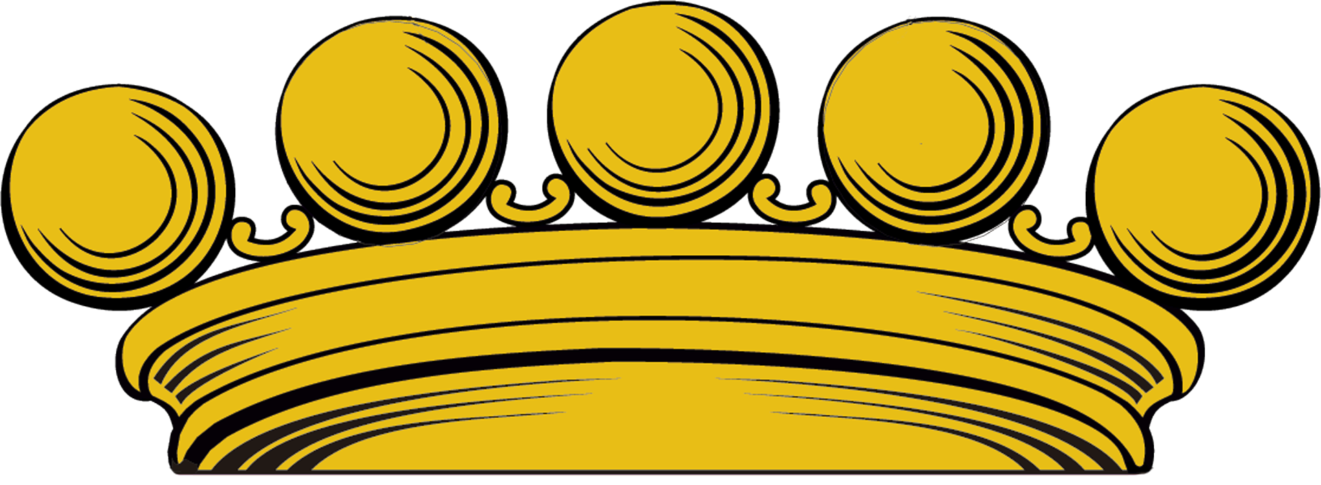 De ouro, constituído por um aro liso, com virola nos bordos superior e inferior, encimado por cinco pelouros aparentes.